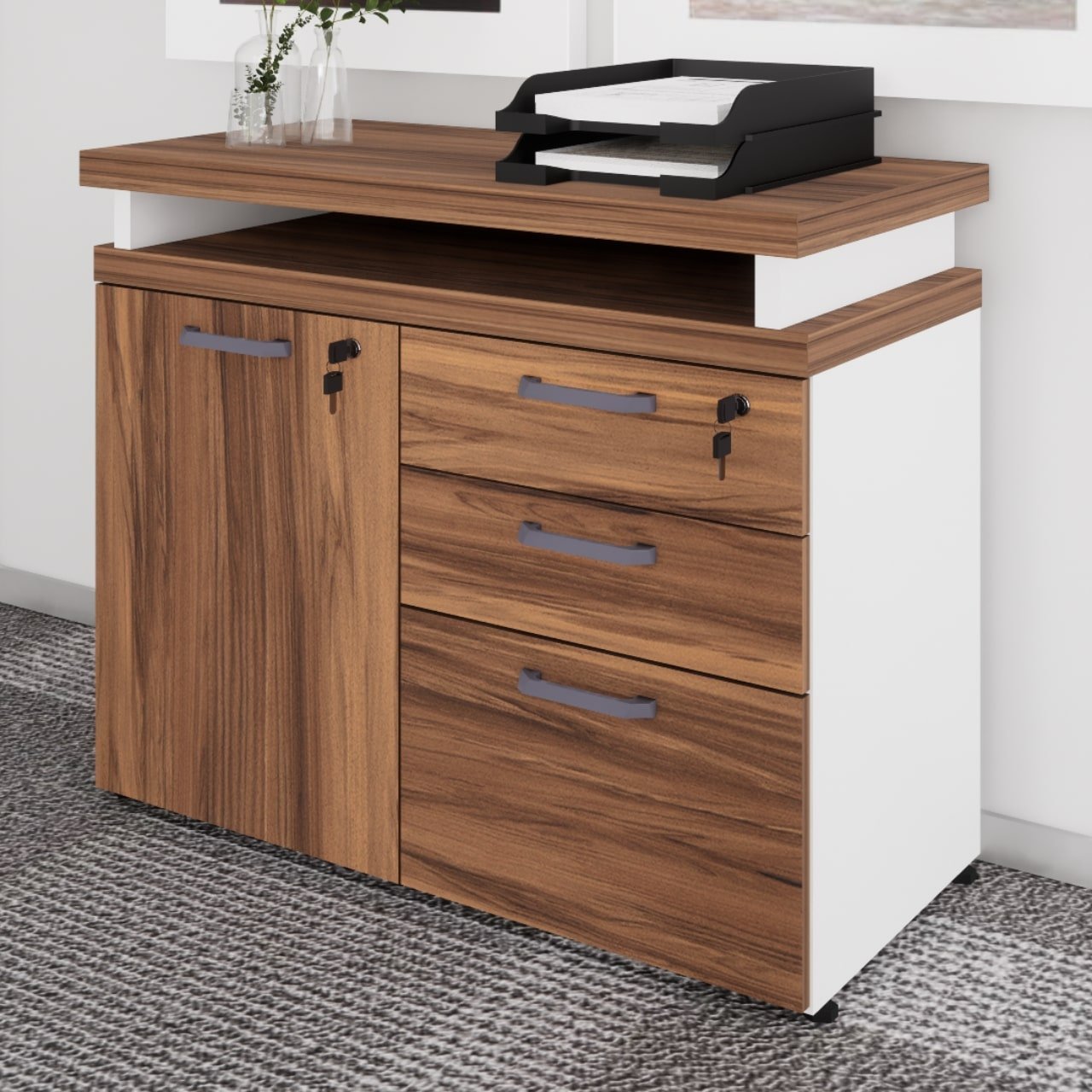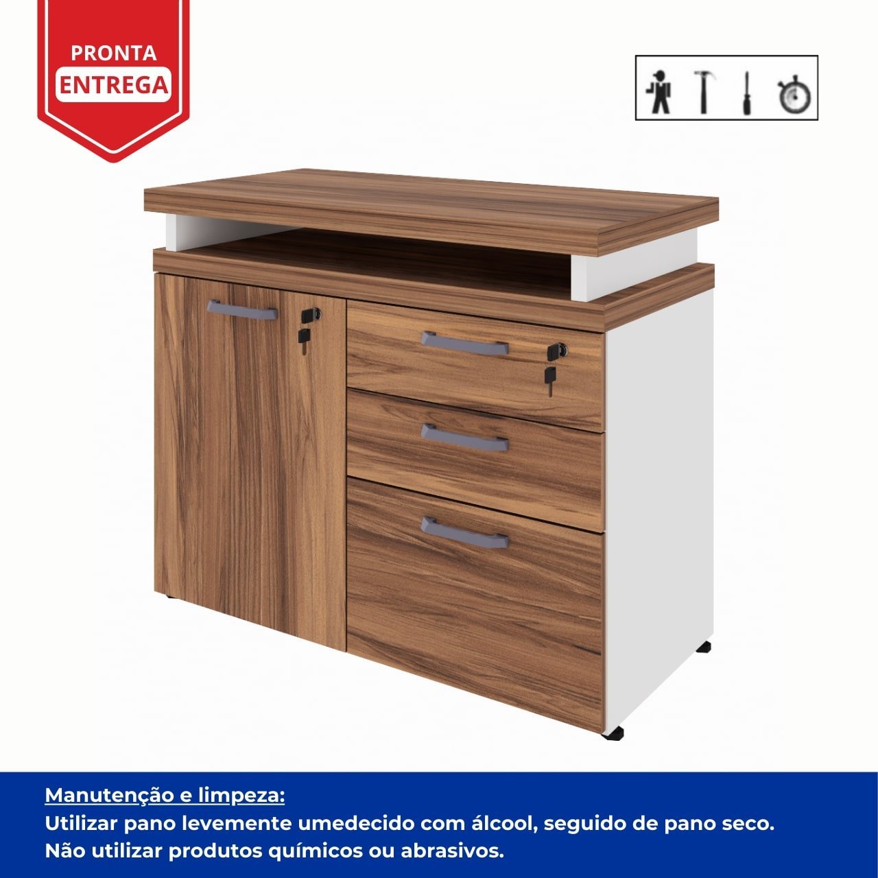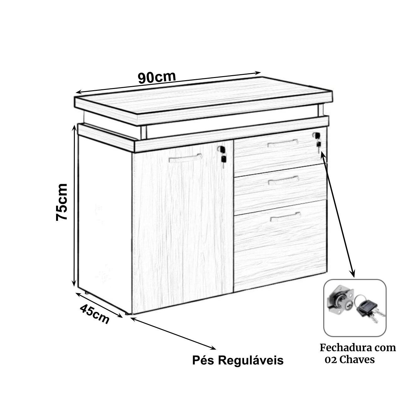 Descrição Técnica – Balcão Credenza com 3 Gavetas e 1 Porta (Nogal Sevilha com Branco) – 34422
