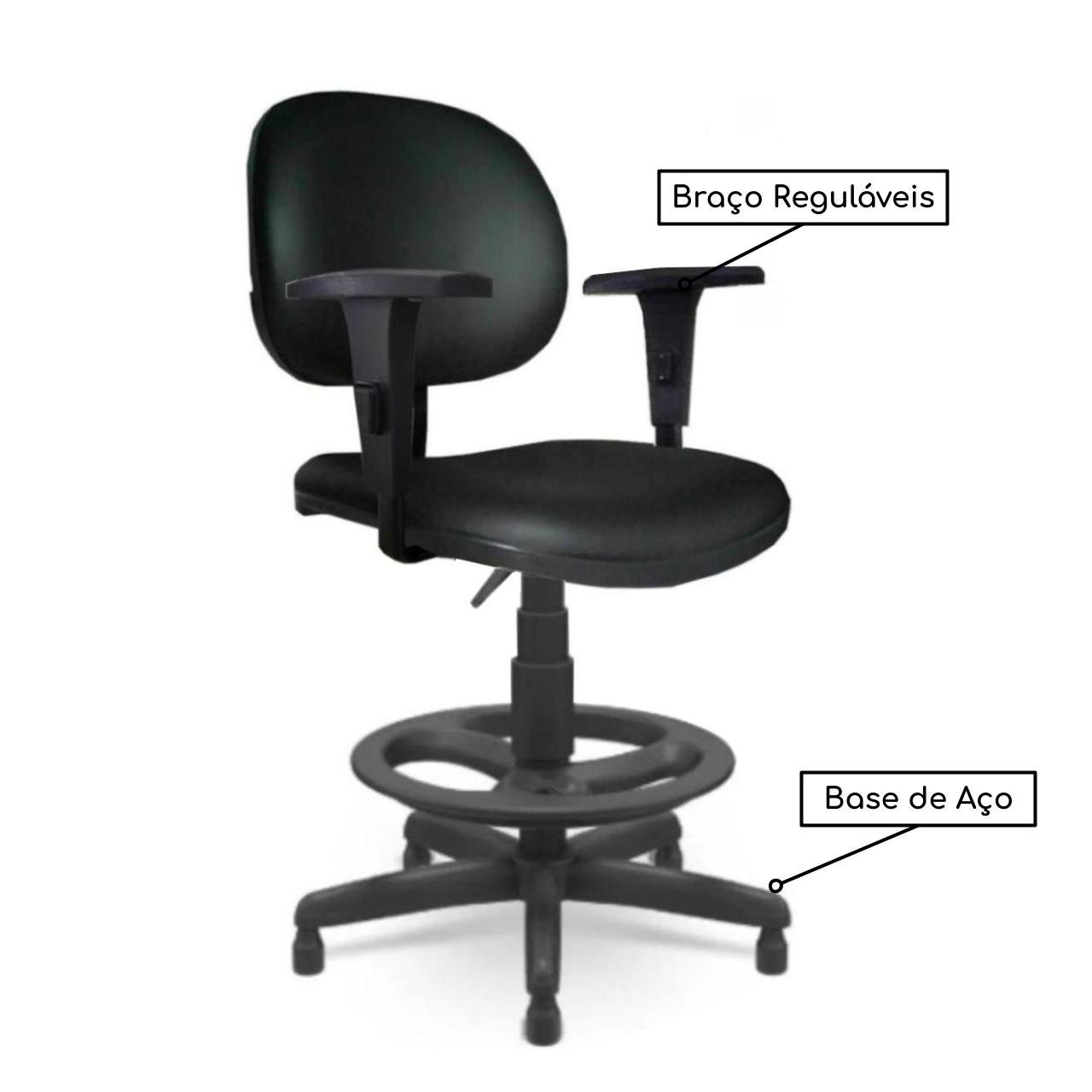 Cadeira Caixa Executiva Lisa com Braço Regulável – (Aranha PMD) – Cor Preta – 35029