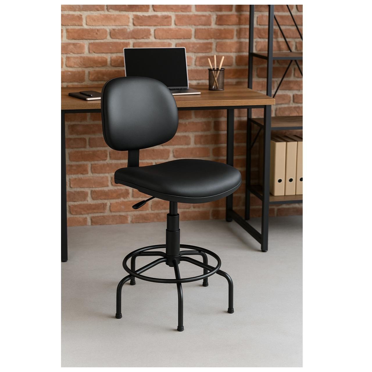 Design ergonômico para uso em laboratórios, escritórios técnicos, balcões e áreas de trabalho elevadas.