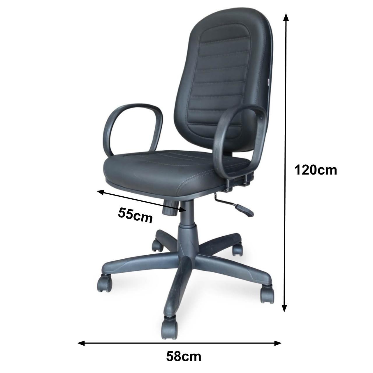 Cadeira Presidente BAIXA COSTURADA – Braço Corsa – COR PRETA 30102