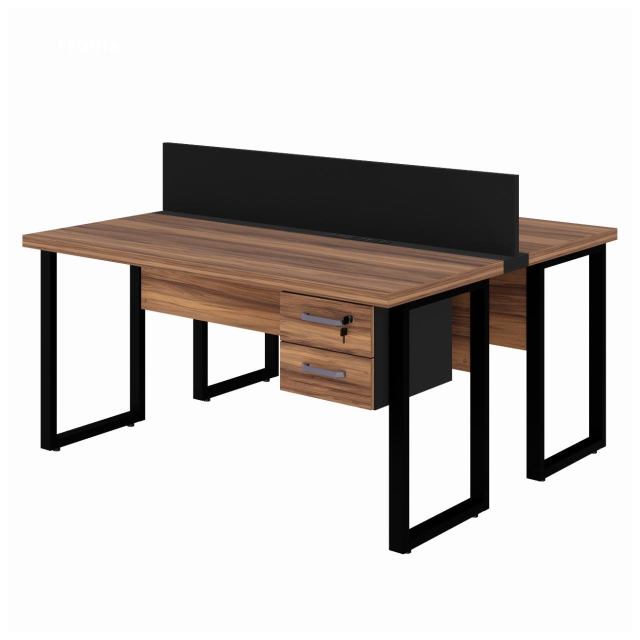 Estação de Trabalho 1,50×1,35m 02 Lugares c/ Gavetas c/ ponto de tomada PÉ QUADRO – Cor Nogal Sevilha – 63099