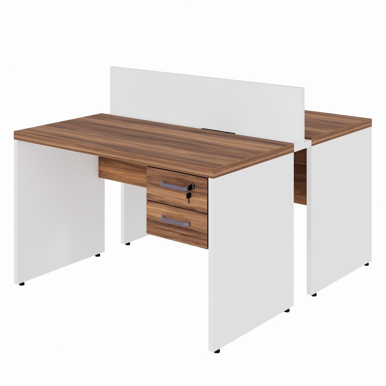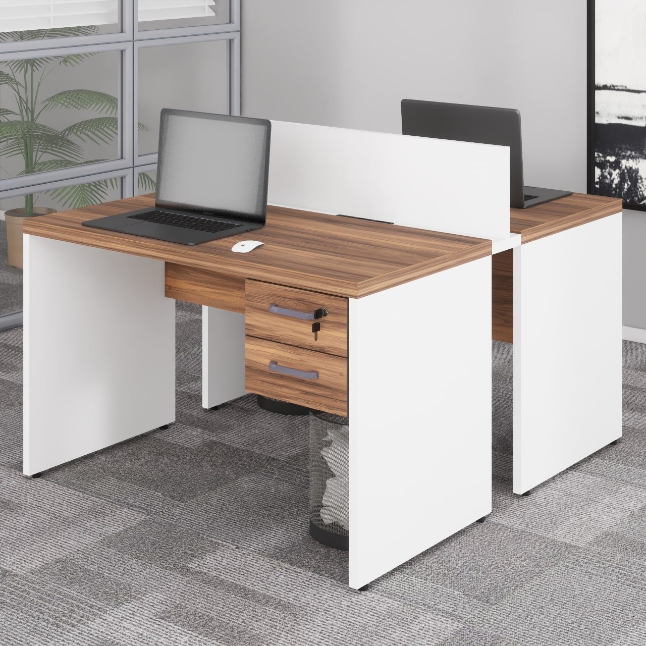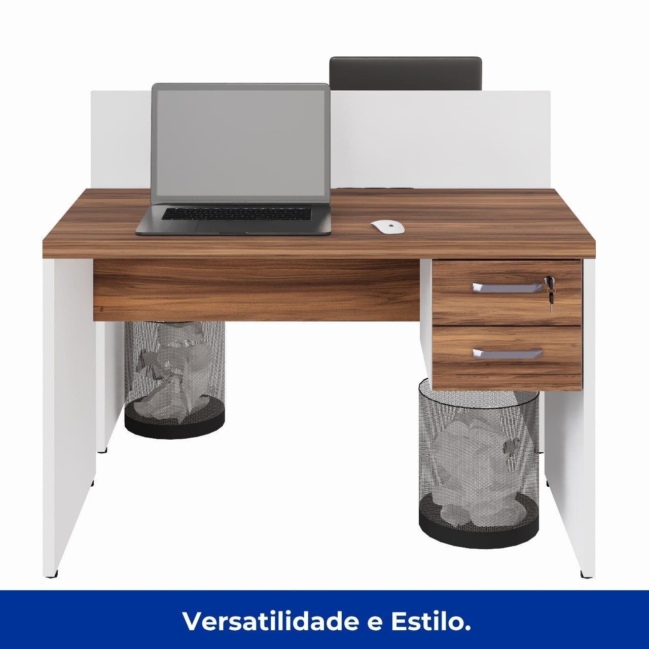 Estação de Trabalho Dupla 1,20×1,35m com Gaveteiro e Tomada – Pé Painel
