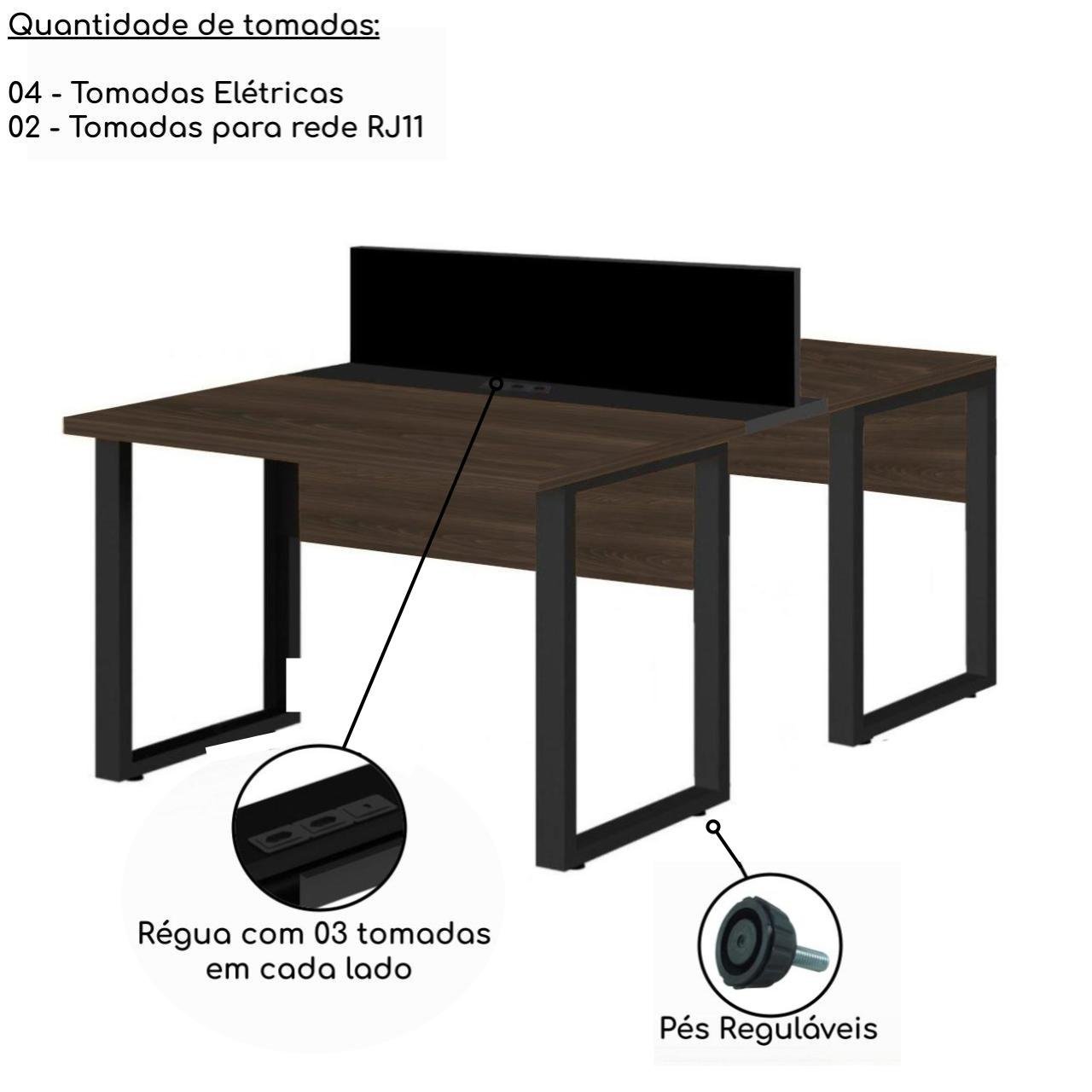 Estação de Trabalho Dupla 1,20×1,35m 02 Lugares S/ Gavetas c/ ponto de tomada PÉ QUADRO MARSALA/PRETO – 64000