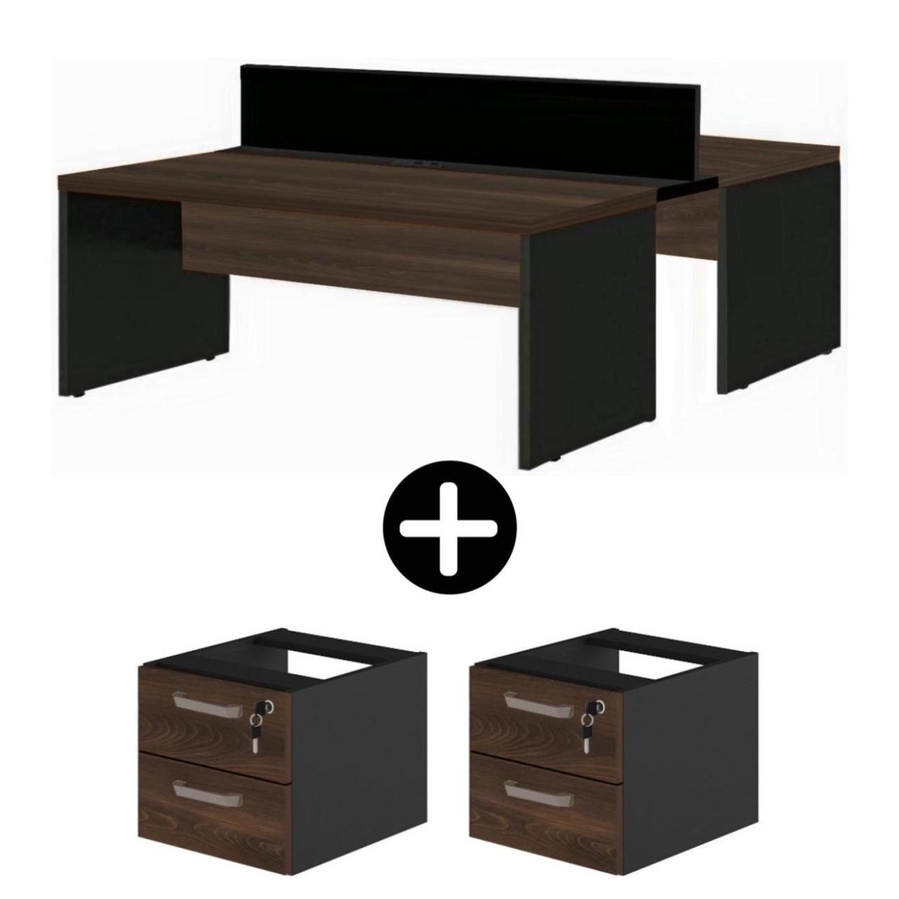 Estação de Trabalho Dupla 1,50x1,35m 02 Lugares c/ Gavetas c/ ponto de tomada MARSALA/PRETO - 63092