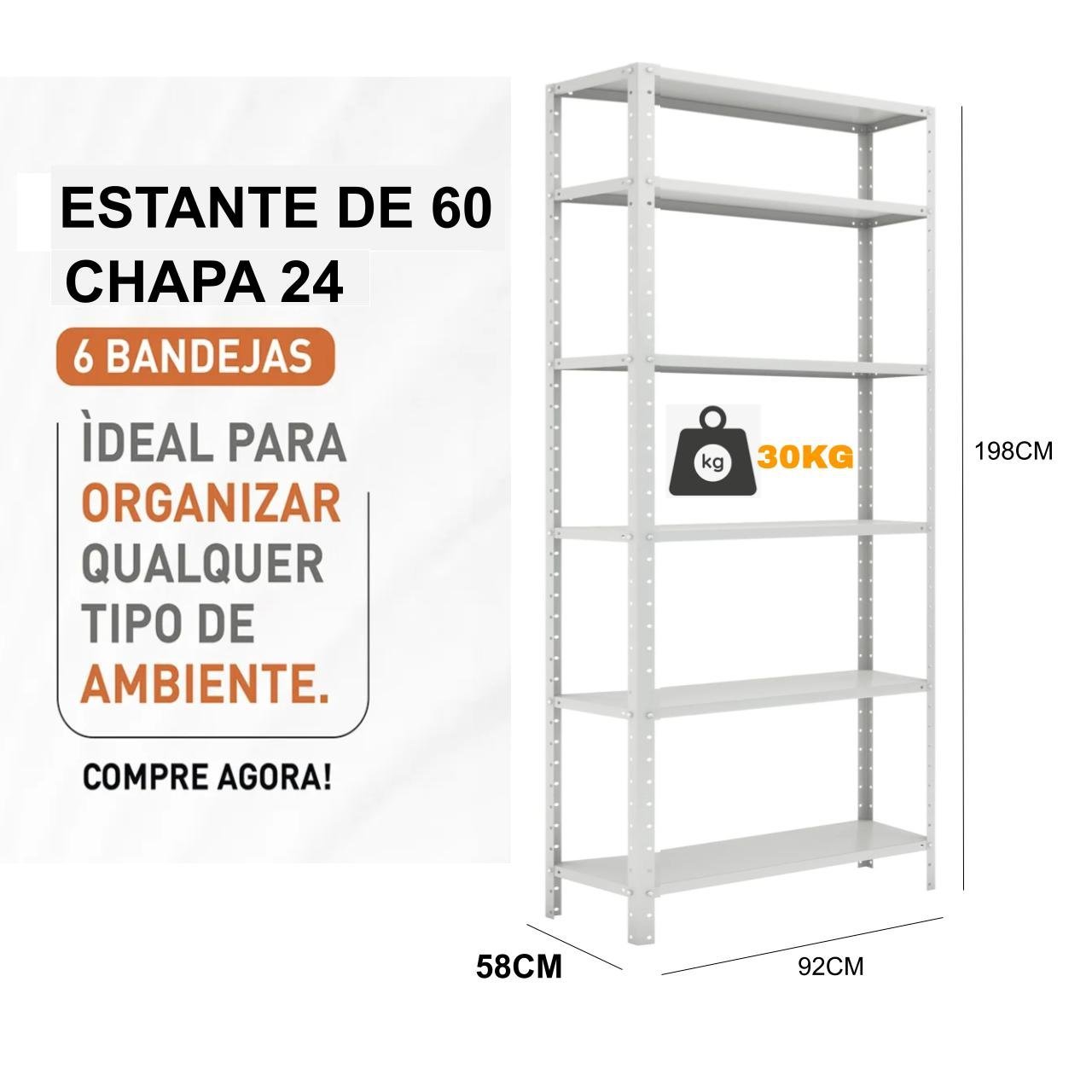 Estante de Aço com 06 Bandejas 58 cm (22/18) – 1,98×0,92×0,58m – W3 – 16041