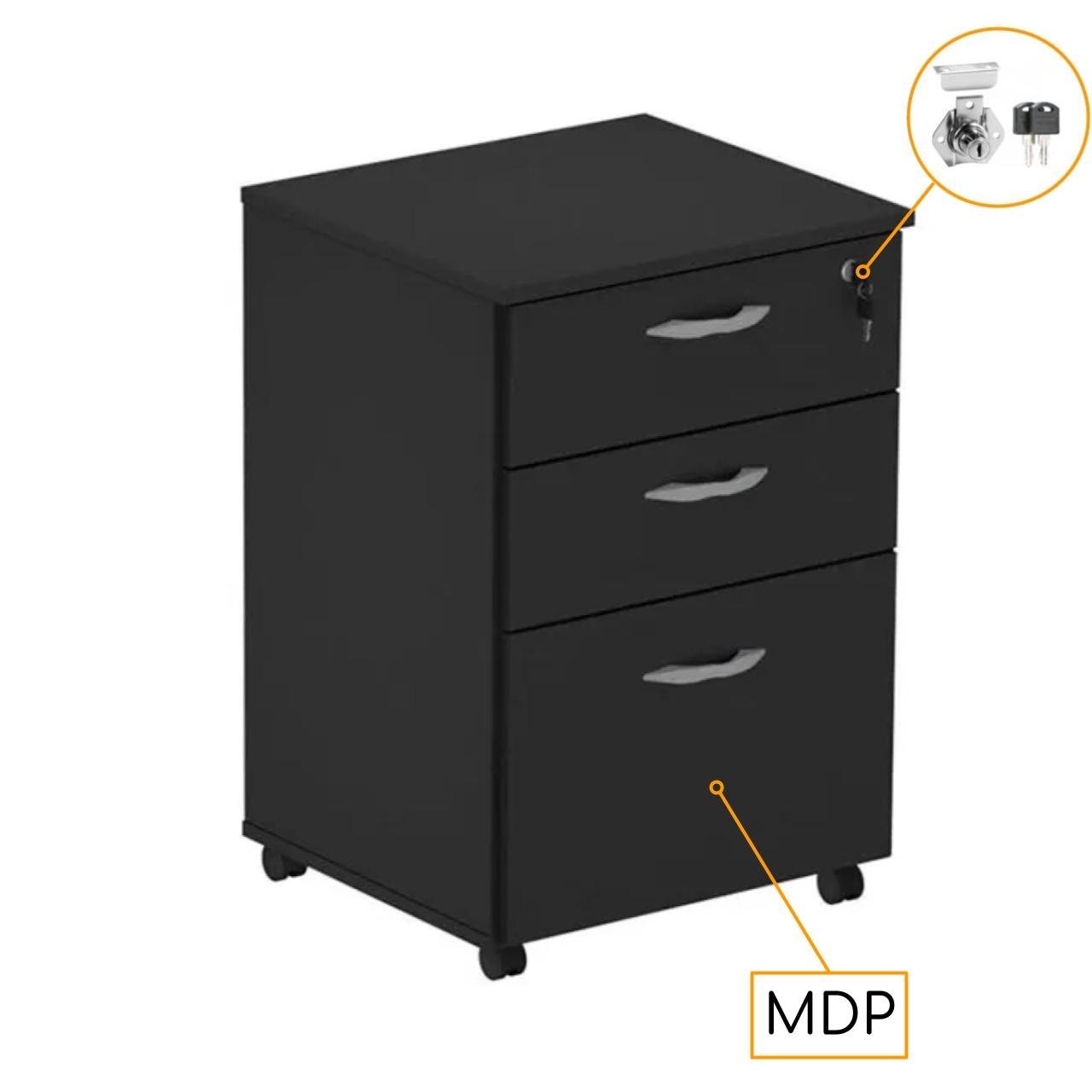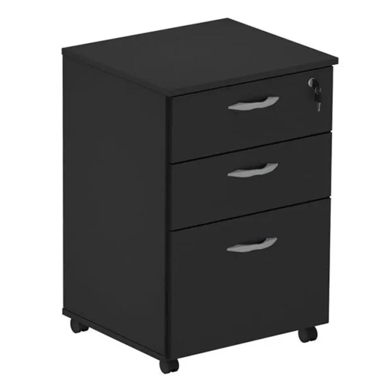 Gaveteiro Volante 03 Gav. 0,67×0,46×0,40m – Cor Preto – PMD – 44107