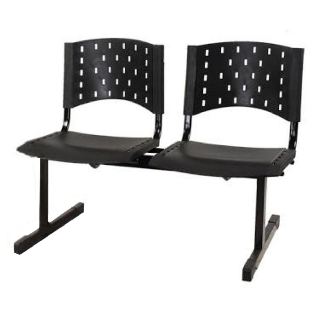 Kit 03 Cadeiras Longarinas PLÁSTICAS 02 Lugares – Cor PRETA – REALPLAST – 23019