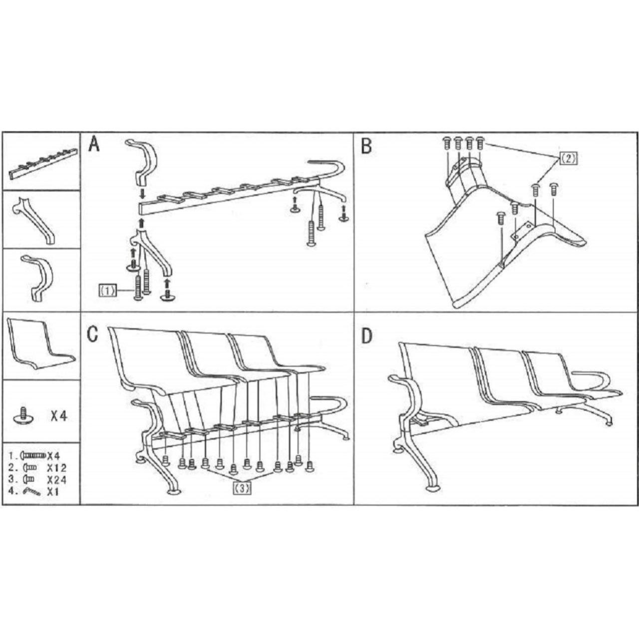 Conteúdo da Embalagem: Assento e Encosto Cromado / Longarina 04 Lugares