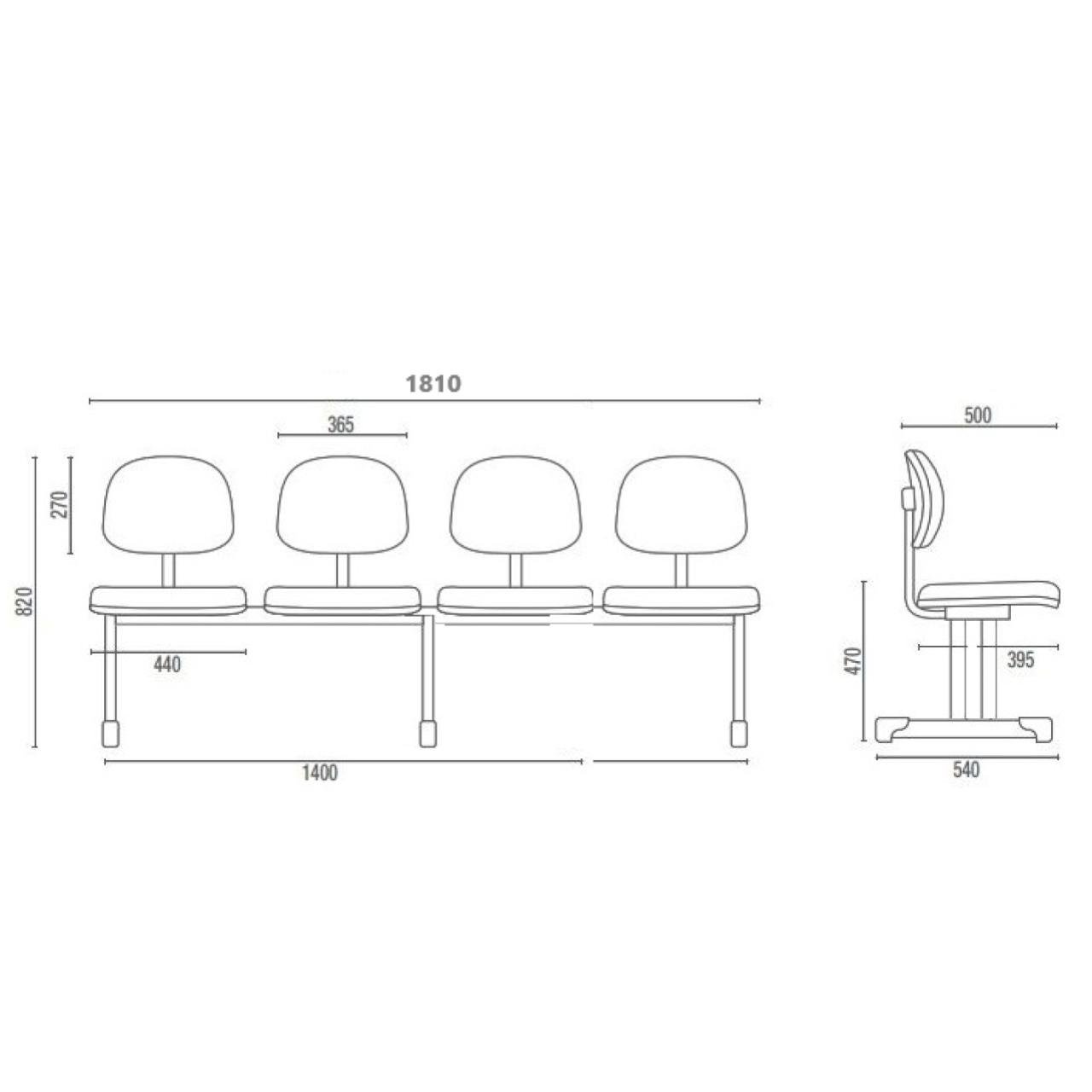 Longarina para Recepção SECRETÁRIA 04 Lugares – Corino PRETO – Pollo Móveis – 34120