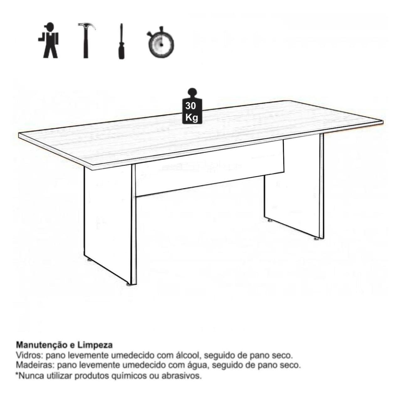 Conteúdo da Embalagem: MESA DE REUNIÃO RETANGULAR COM CAIXA DE TOMADAS