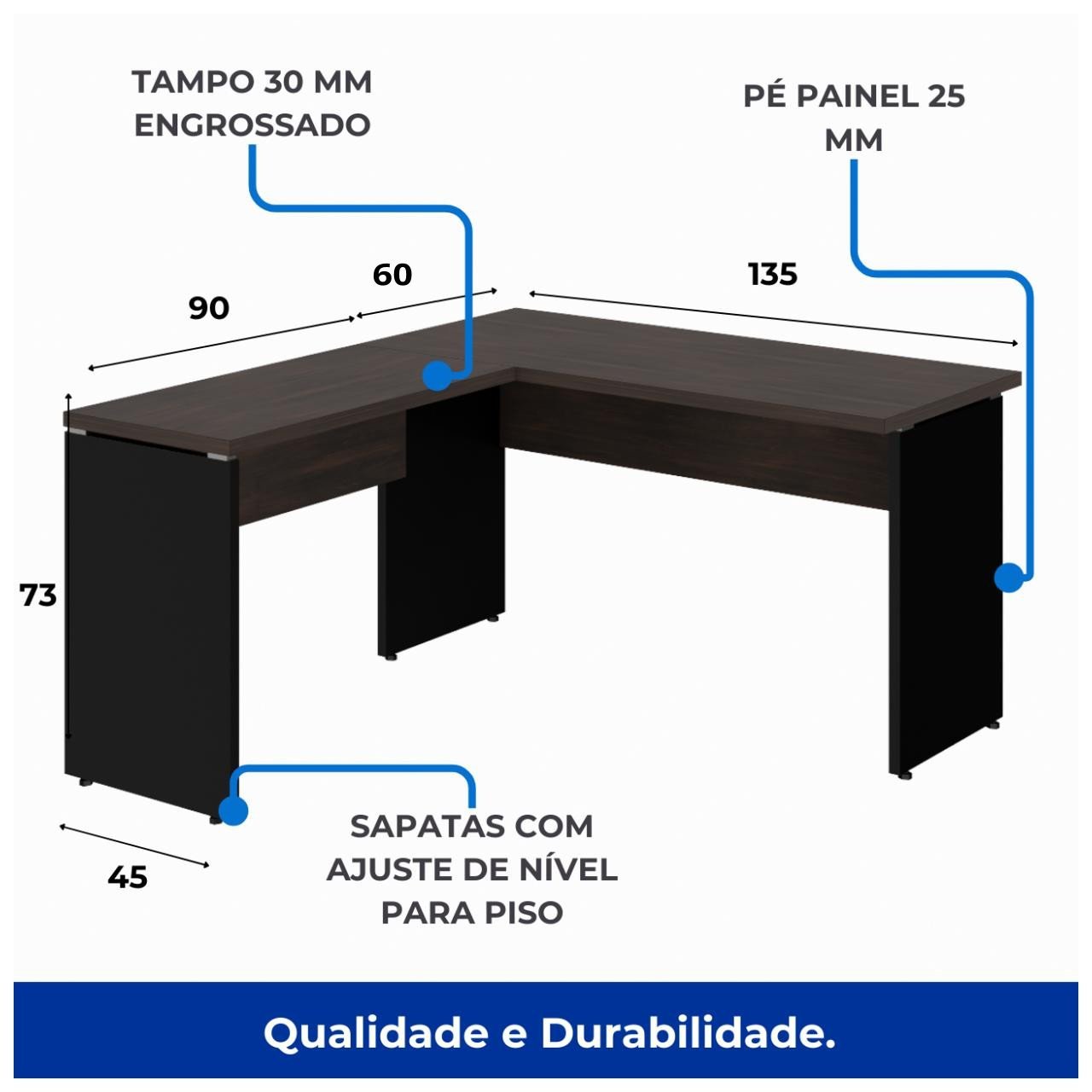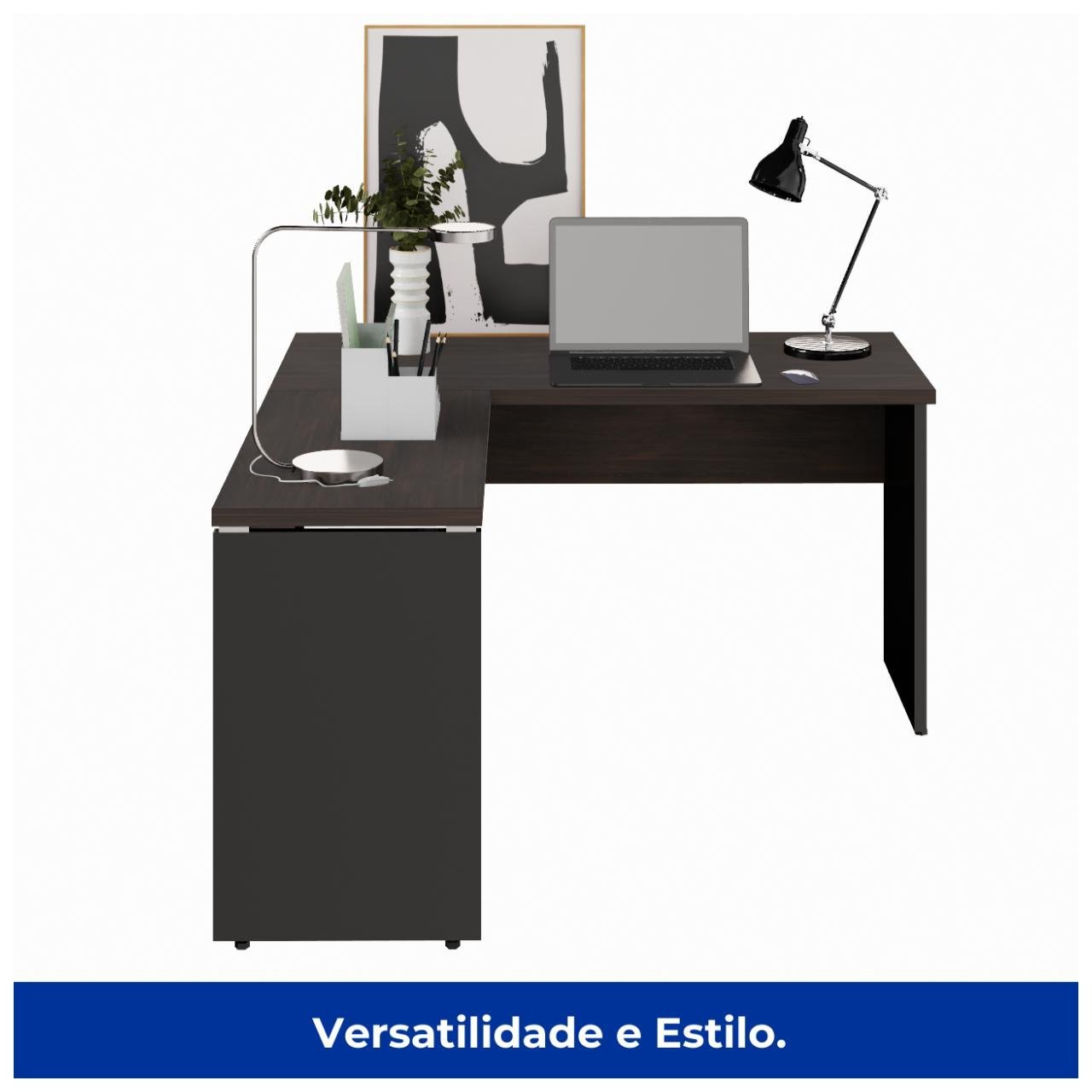 Mesa em L (Mesa 1,35m + Mesa Auxiliar) – S/ Gavetas MARSALA/PRETO – 25422