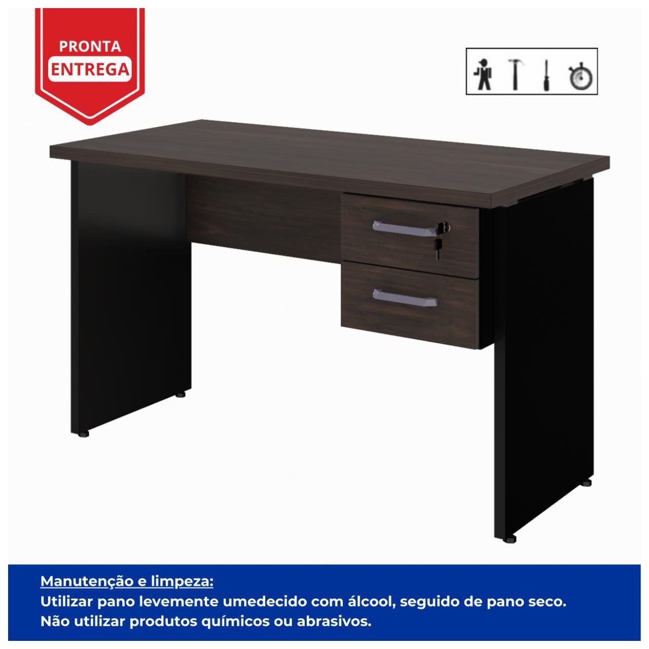 Mesa Escritório 1,20×0,60m – C/ 02 Gavetas MARSALA / PRETO – 23471