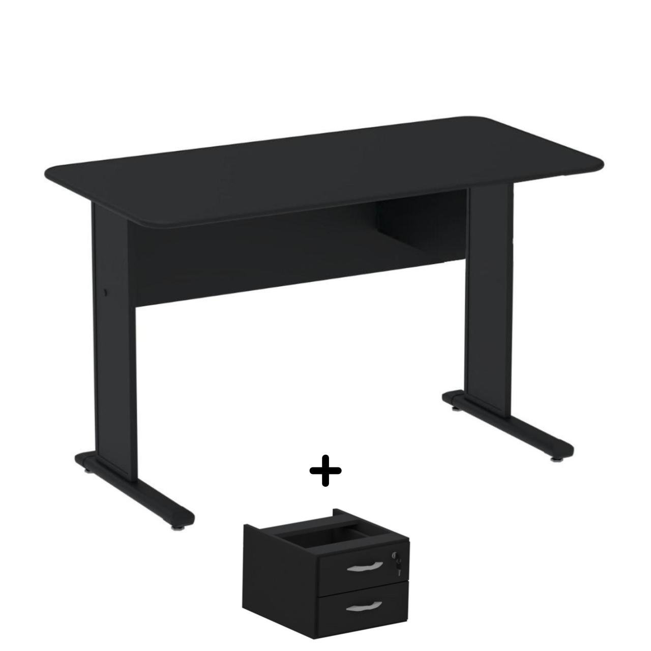 Mesa Escritório 1,20x0,60m c/ Gavetas - Cor Preto - JOB - 44090