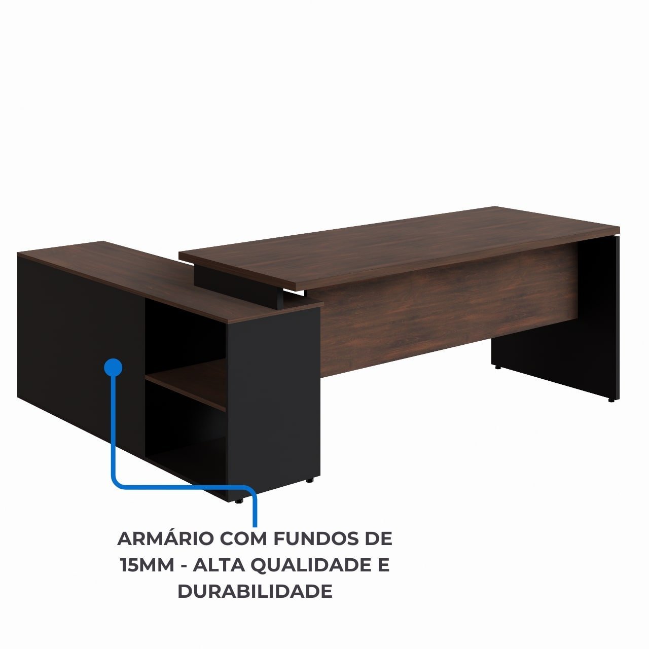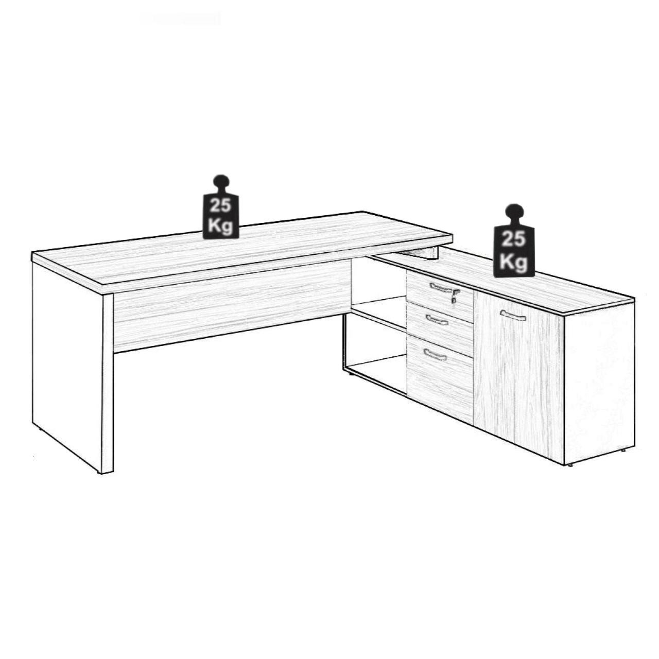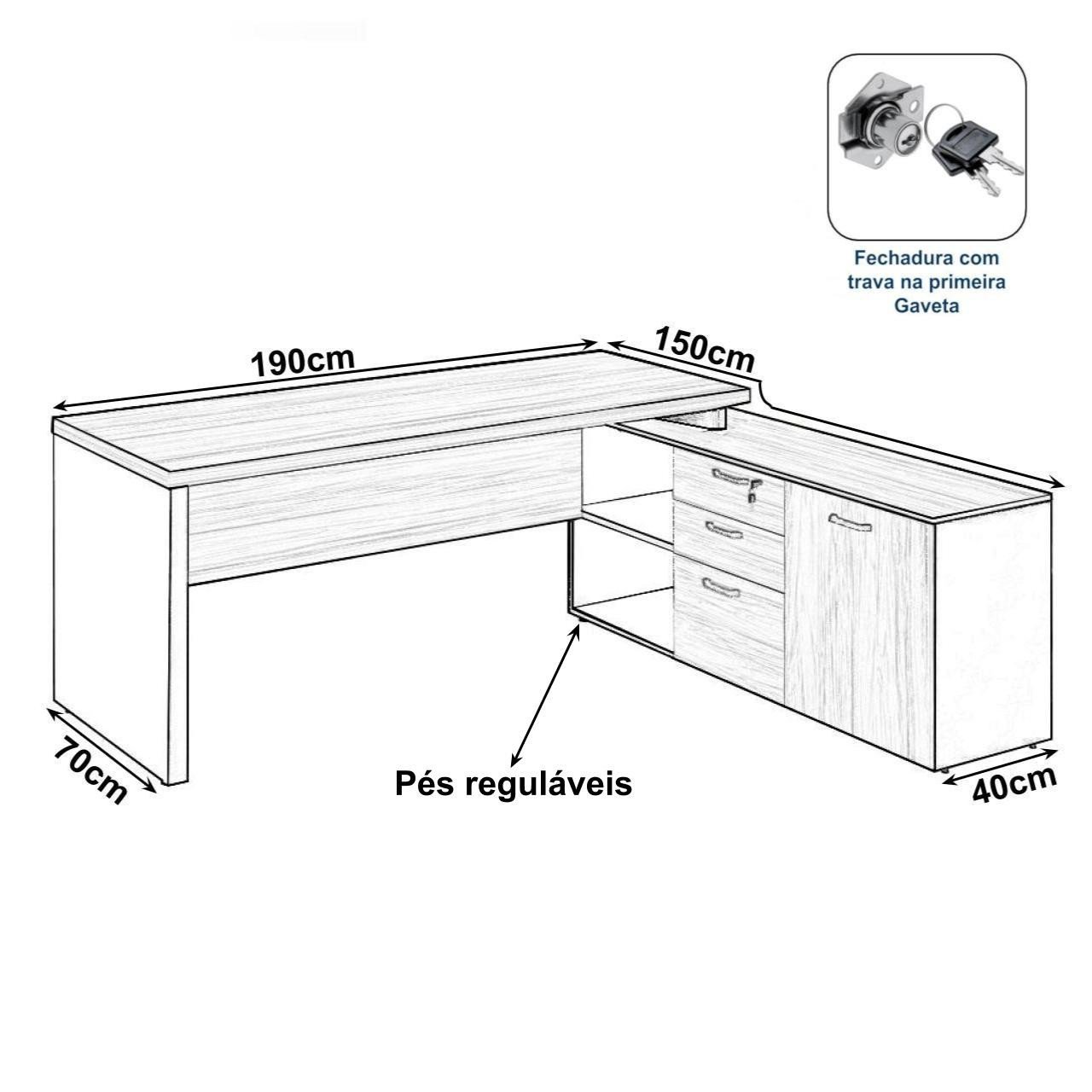 Formato: Mesa com aparador lateral integrado em formato “L”