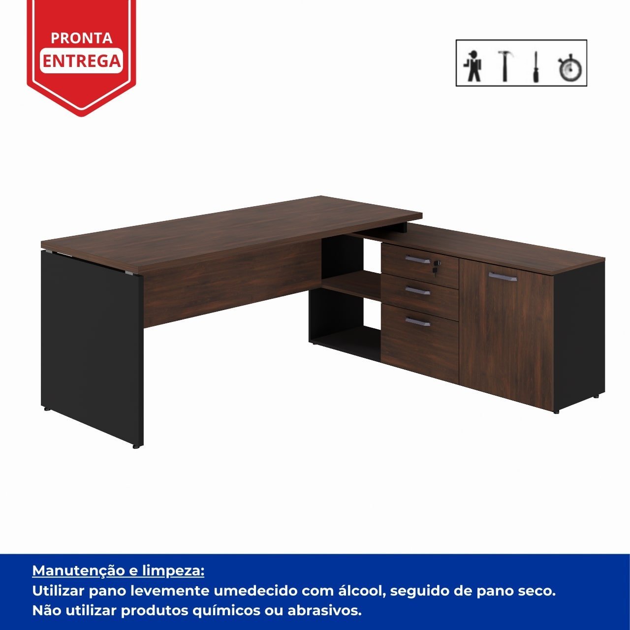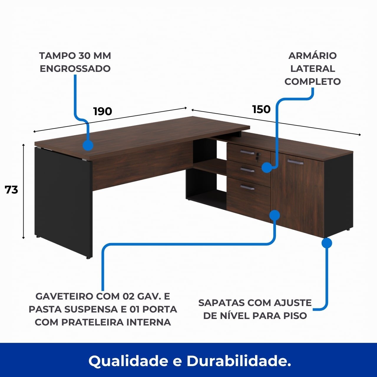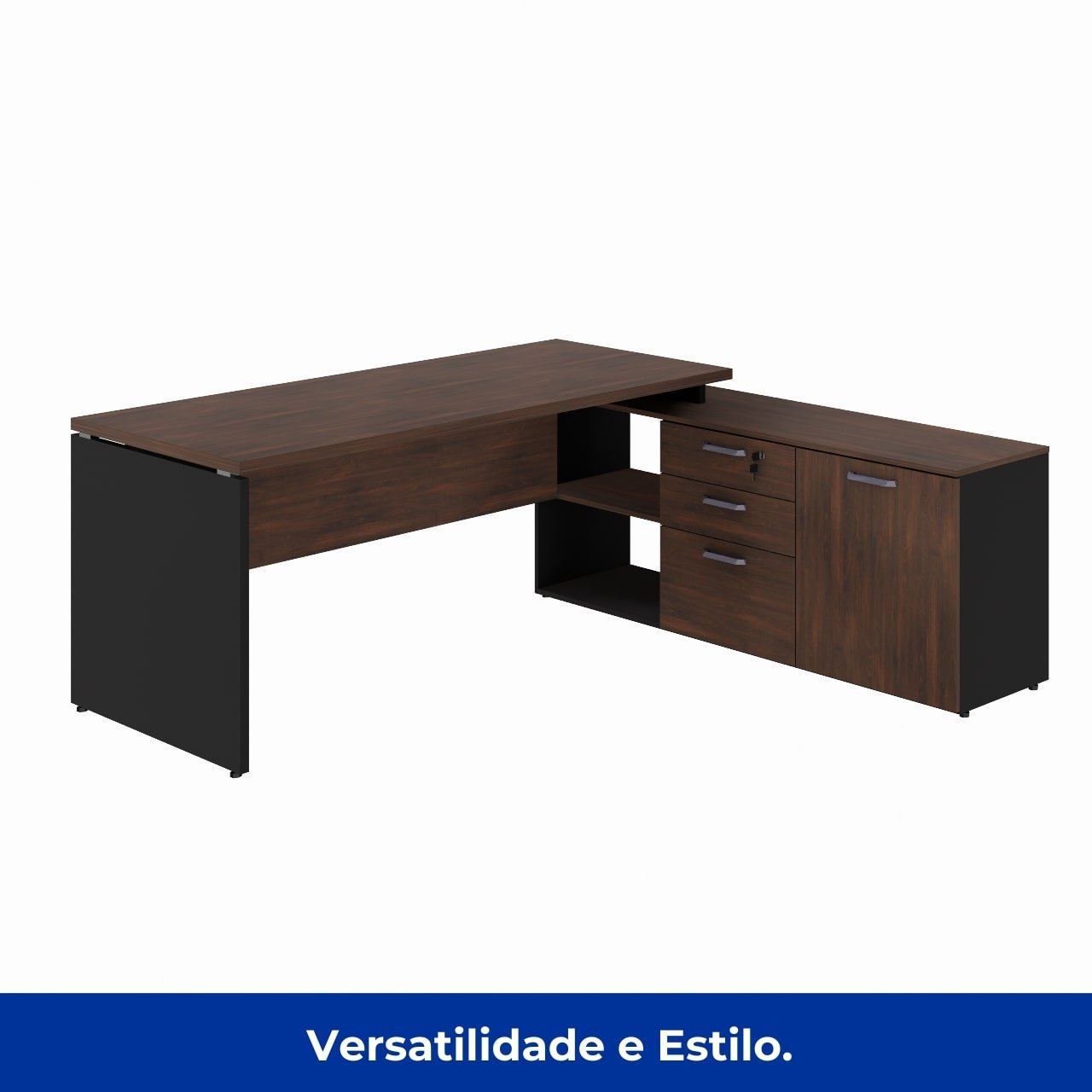 Formato: Mesa com aparador lateral integrado em formato “L”