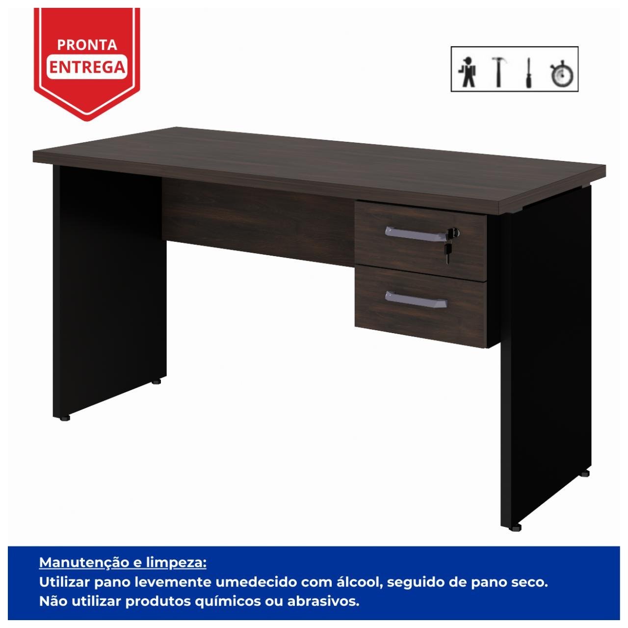 Mesa Escritório PÉ QUADRO – 1,35×0,60m – C/ Gavetas – MARSALA/PRETO – 25421