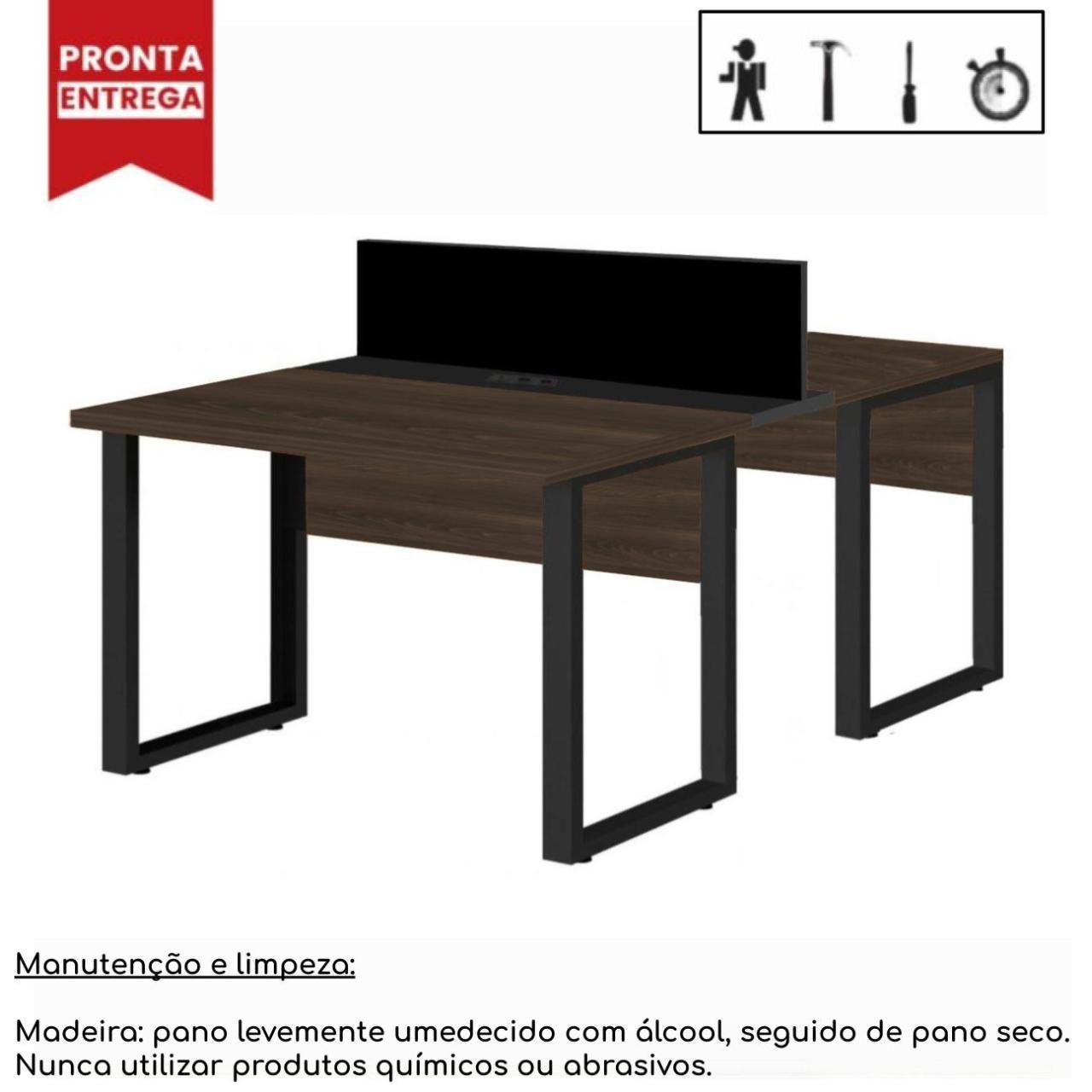 Mesa Estação de Trabalho Dupla 1,50×1,35m 2 Lugares s/ Gavetas c/ ponto de tomada PÉ QUADRO MARSALA/PRETO – 64002