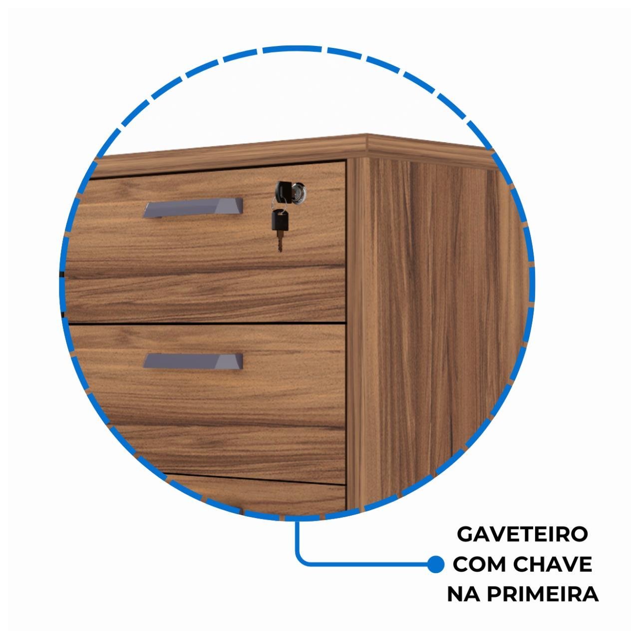 Outros Recursos / Mais informações: Sapatas Niveladoras de Altura / Sistema Minifix de Montagem / Manual de Montagem / Gaveteiro com Fechadura na Primeira Gaveta / Gaveta com Pasta suspensa