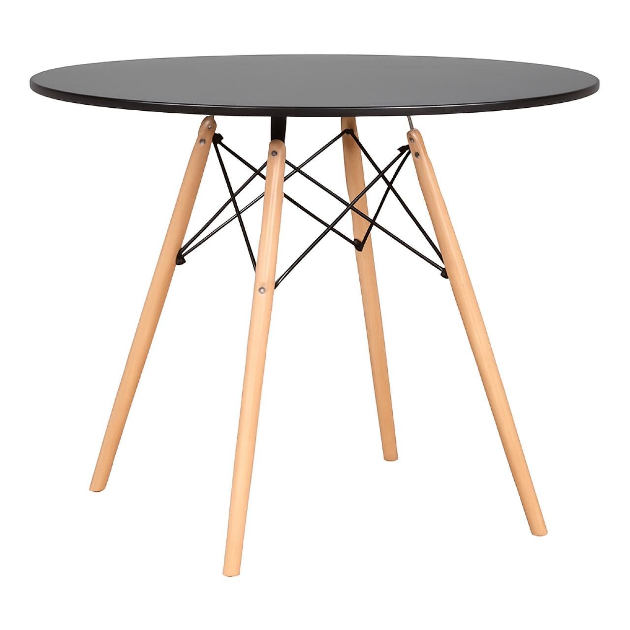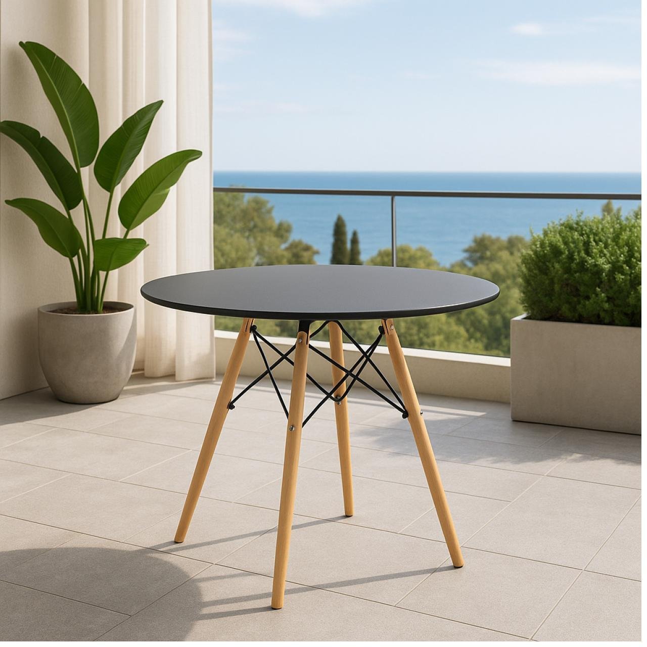 Mesa Redonda Eiffel – Tampo Preto Fosco e Base Madeira