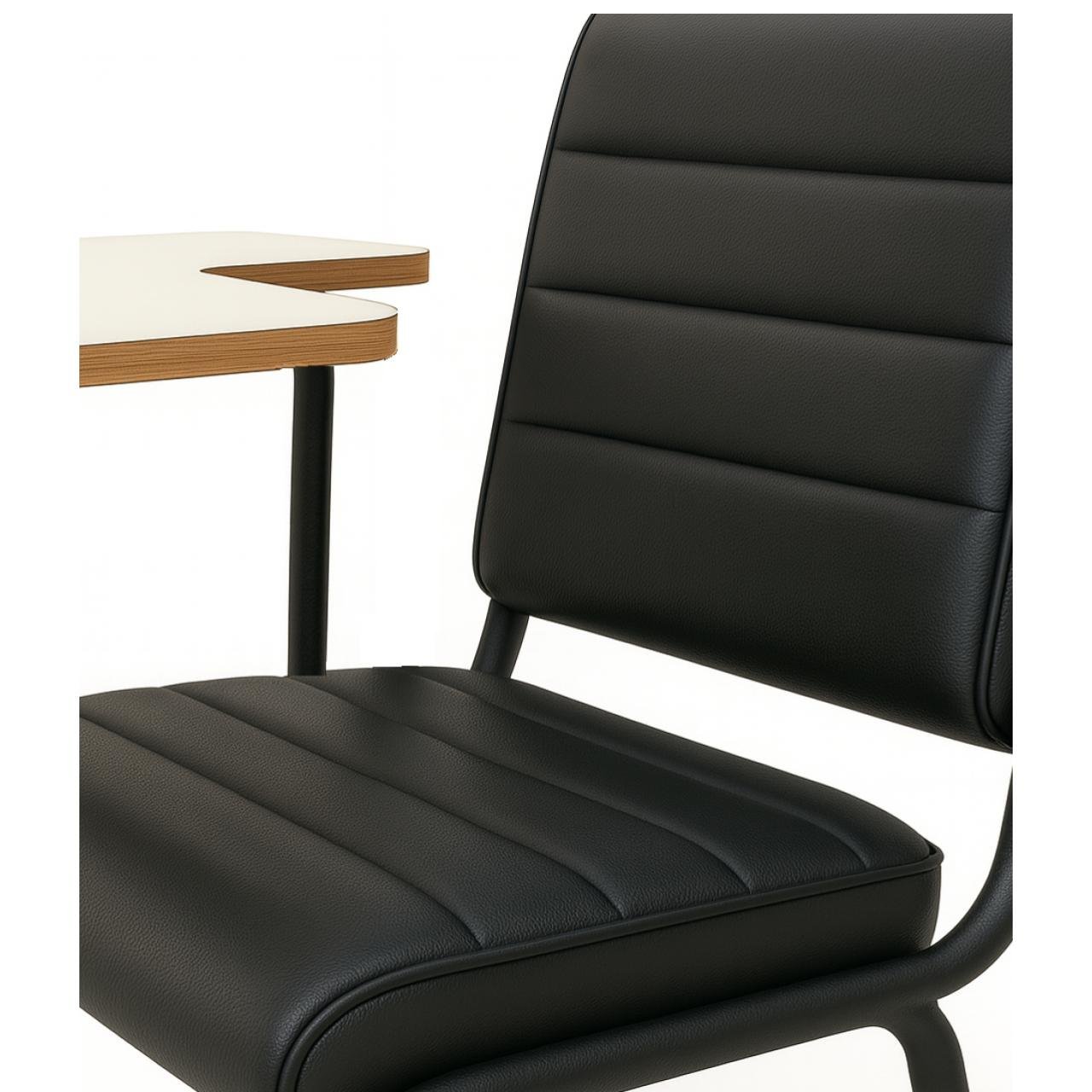 A cadeira escolar com prancheta lateral foi desenvolvida para proporcionar praticidade, conforto e resistência no uso diário em salas de aula, treinamentos, auditórios e ambientes educacionais em geral. Seu design moderno, com linhas retas e estofamento acolchoado, garante ergonomia e durabilidade, atendendo às necessidades de estudantes e professores.
